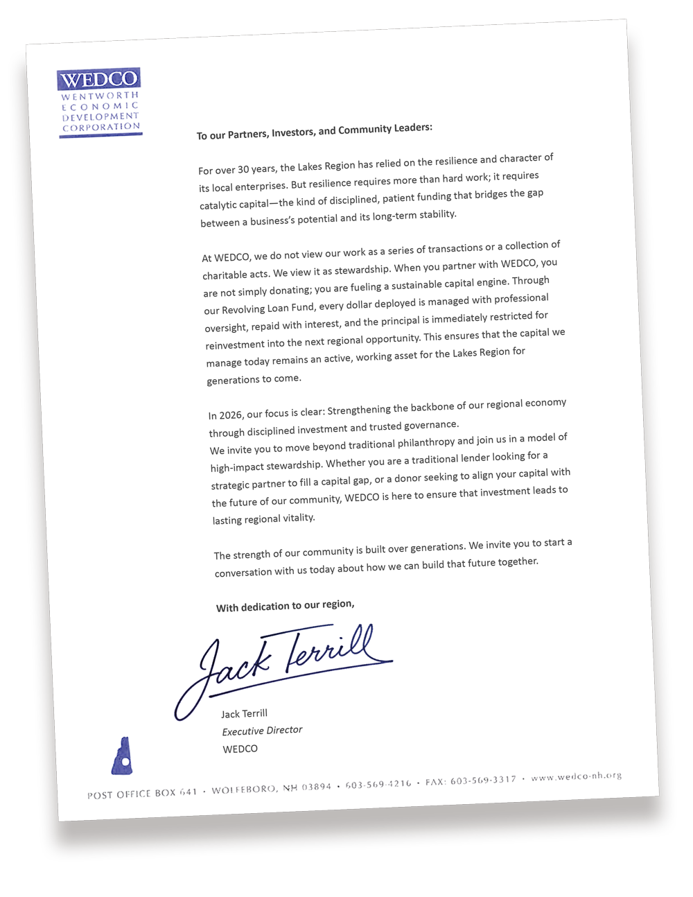 WEDCO is the Lakes Region’s long-term steward of catalytic capital—partnering with investors, donors, and community leaders to deploy funding that strengthens local businesses, creates jobs, and sustains regional economic vitality.